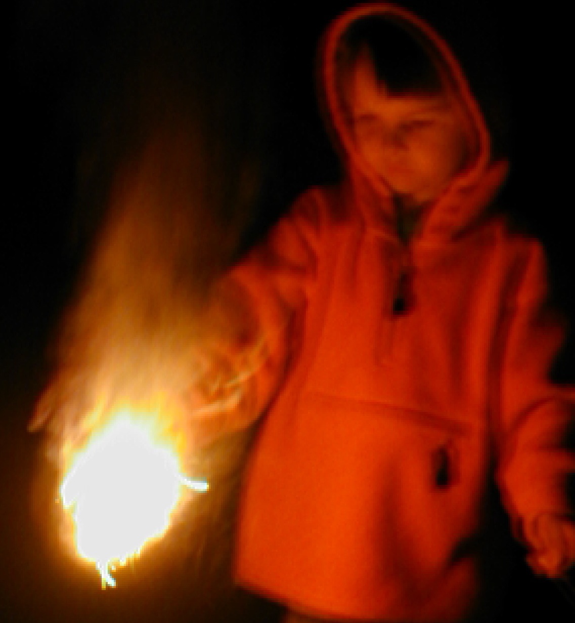 Me as a four year old holding what I think is a sparkler but might have been some random flaming object.
