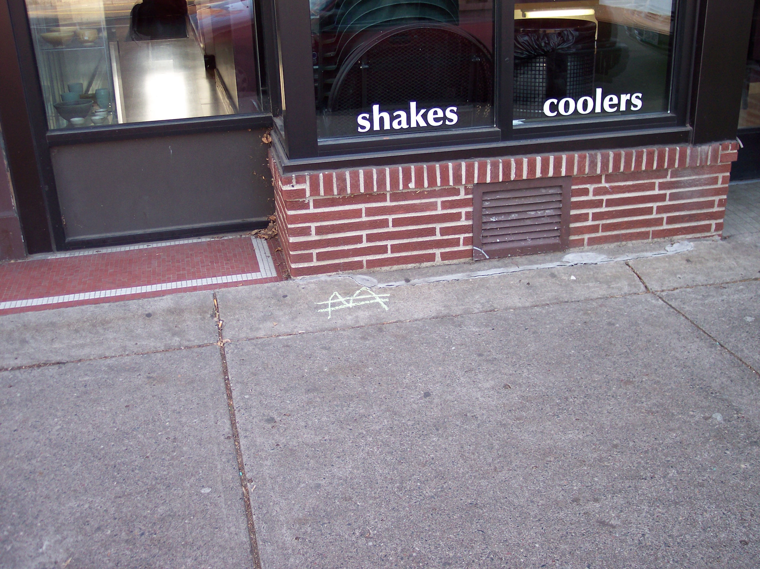 Meat will may be used for money here. Chalked outside of the tea garden where Peter Harmon completed Meat is Money.