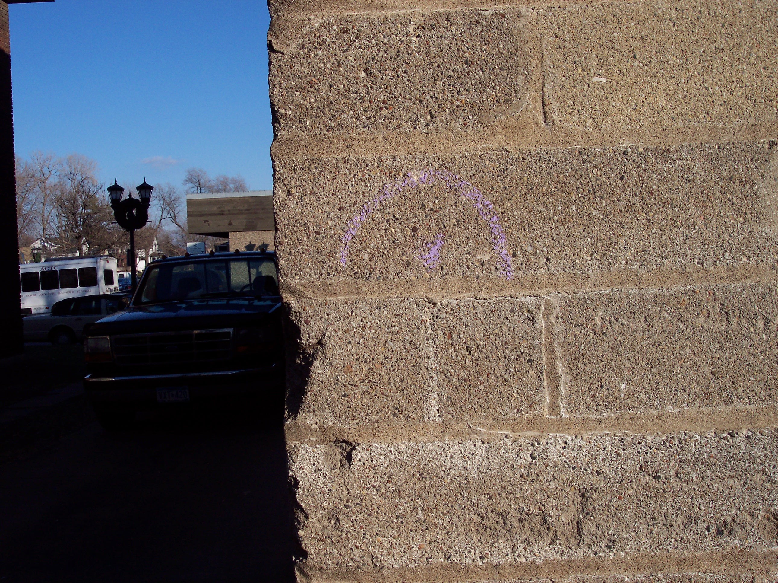 download file This area is not friendly to tasking. Or, to put it another way, people around here will accept crazy behavior. Sorry about the bad picture but for some reason I've found it nearly impossible to photograph this. This symbol and it's twin are both adaptions of real hobo signs. If you're having trouble remembering which stands for safety and which stands for not safety, use this simple method: the half circle represents the forces stopping you from tasking, the dot represents you. When the circle's down, it's trapping you in and keeping you from escaping. When it's up it's letting you free. |