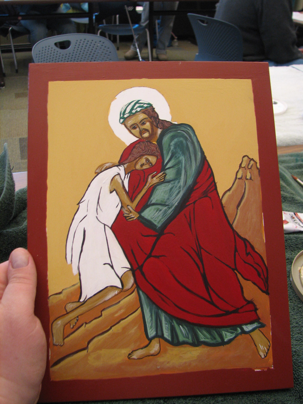 download file the next step is to put gold leaf on the halo. (see video) At this point, when I see this, I mostly see the imperfections. There is a Lutheran theological point I can make with this, which is to say in short, the "icongraphic process" Worked in my opinion. Though perhaps not in the sense envisioned by the old Byzantine and Orthodox theologies. |