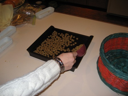 Filling with kibble.