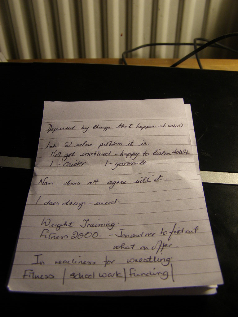 Depressed by school, Nan does not agree with something, smokes weed, looking into Fitness Training,