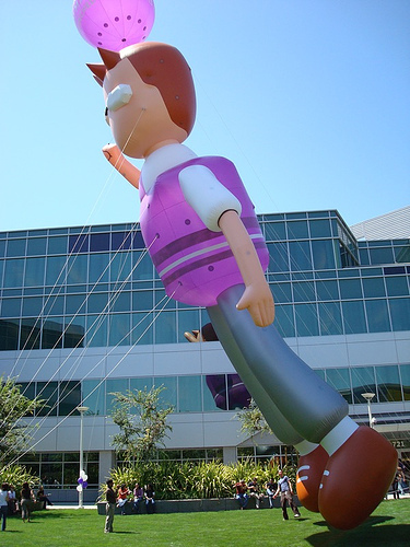 Unfortunately I couldn't find a picture of me attempting to tackle his right foot. Also challenged an 8 year old to run as fast as he could into the left foot. His Dad and my boss were proud.