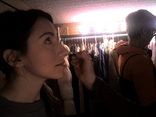 Getting dolled-up for the CES video for Jerry Yang's presentation.