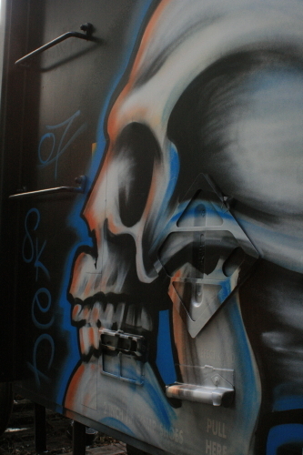 download file Check out this gigantic awesome skull on some train i found. Worcester may not have much, but it has this. I like the weird train arrow panel things on the side of the car that add texture to the cheek. Looks like it's gonna chomp me. |