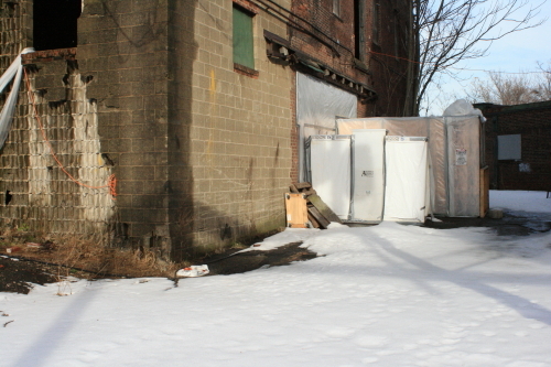 download file Barely noticable orange extension chord? Check! Entryway made of wood and plastic with Asbestos warning signs on it? Check! Deterred from going inside the building? Check! That plastic that is breaking up the left edge of the photo in a way that i should've taken care of looped down and then up again. In the sag was a bunch of yellowish disgusto water. |