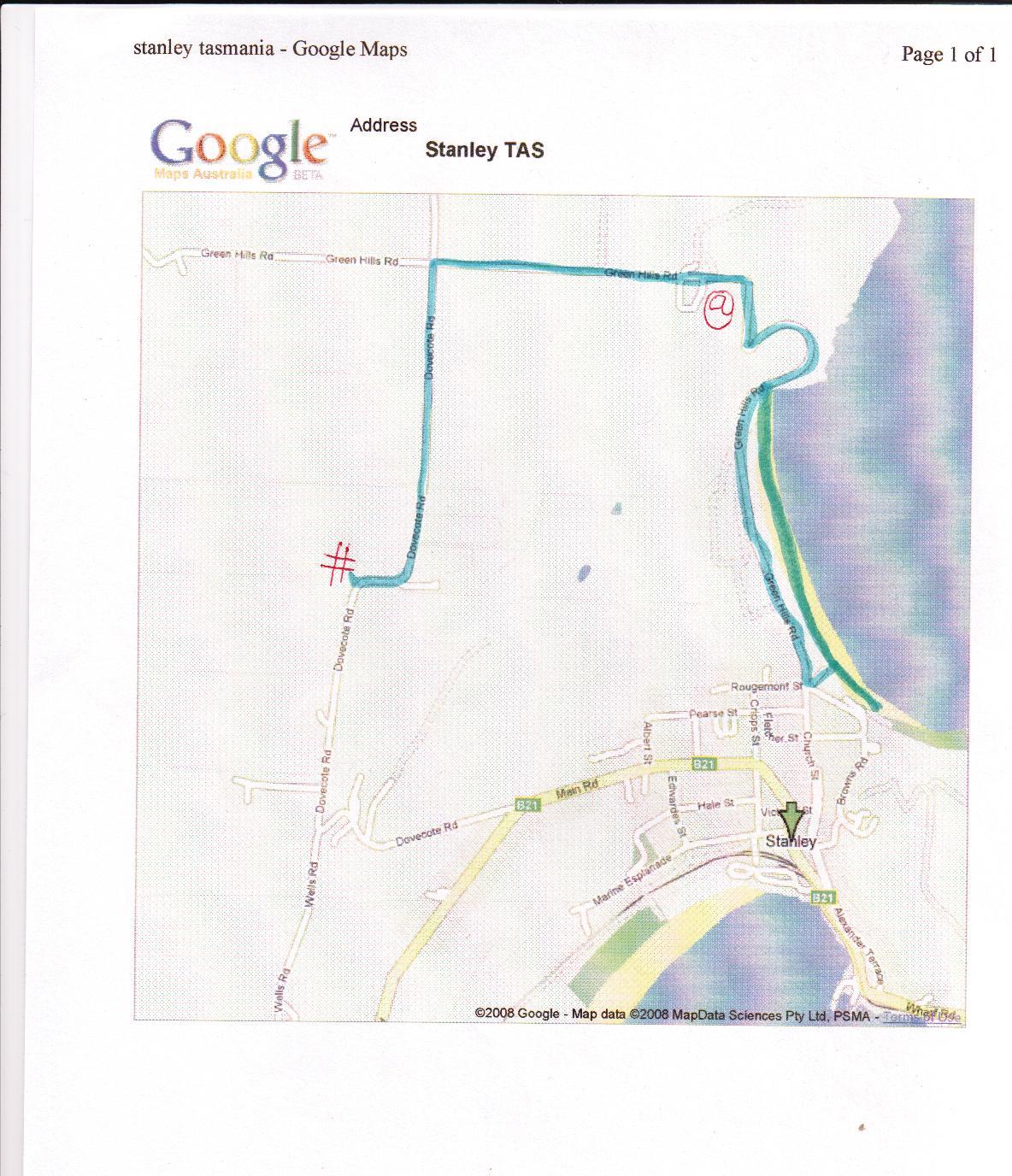 The last map in the series. This is a long walk so I'd recommend only doing it once or doing it for exercise. The destinations, in order, are Highfield (@) and the Lookout (#). The lookout has a great view.