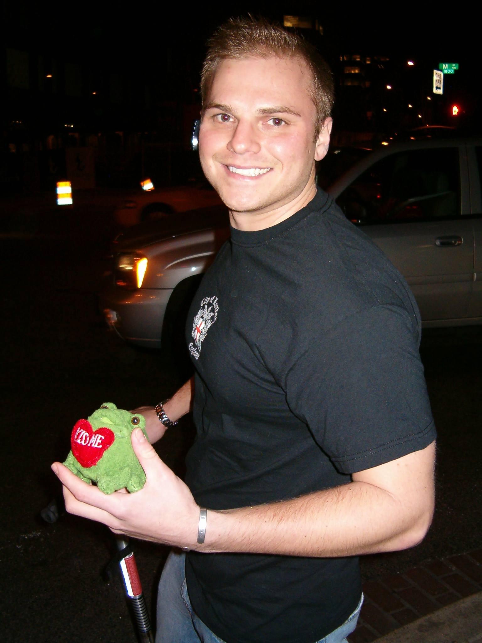 You'd think a guy riding on a motorized scooter in downtown DC would be up for just about anything, but his bravery went only so far as posing with the frog and not the wart stick.