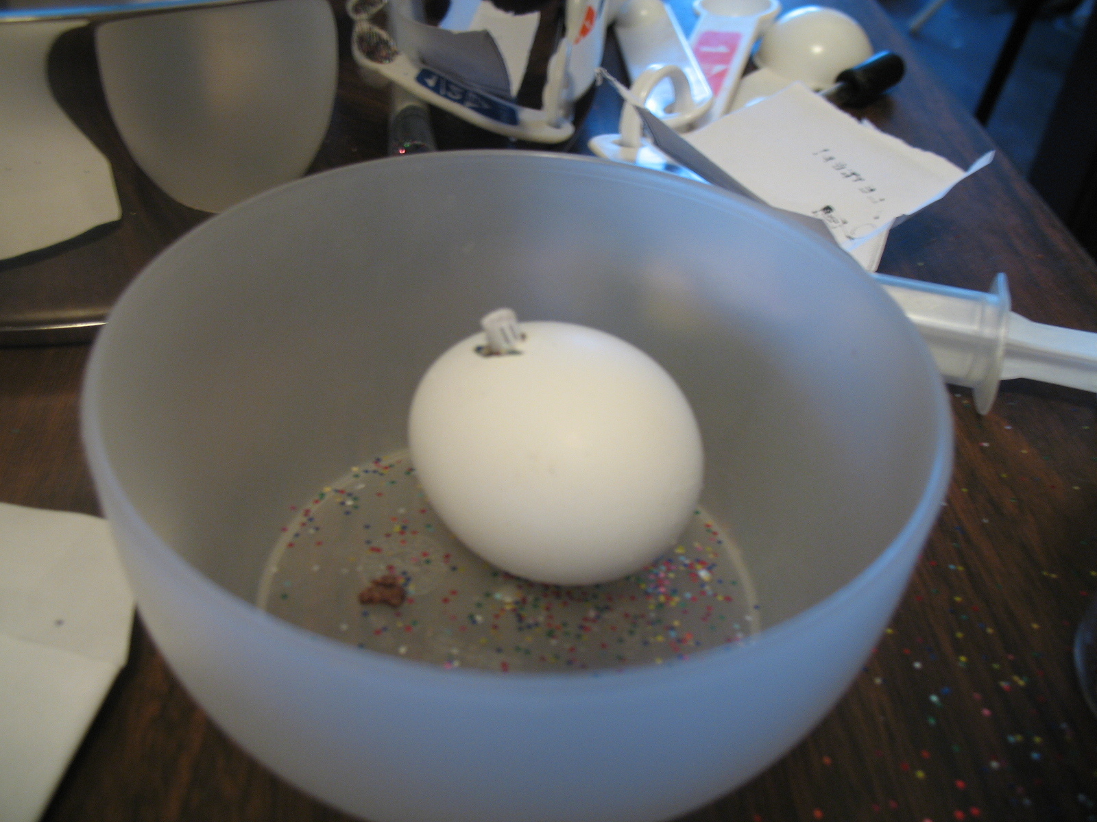 I rolled up the secret and put it in the egg. Here pictured is the secret poking out of the egg. Cute, yes?