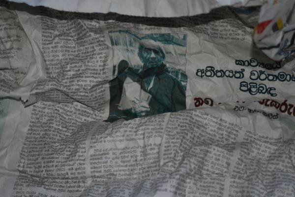 Friends of mine recently returned from Sri Lanka. They got me an awesome gift and wrapped it in this newspaper. Am gonna use it to wrap the shirt.
