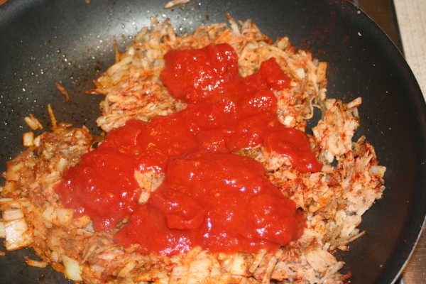download file So, this is where breakfast got weird. Usually when i make this kind of thing for breakfast i use a liquid with a fair amount of protein to emulsify all of the ingredients together into something coherent. I didn't have soy milk, and wasn't using regular milk, so i decided to just throw in stewed tomatoes as a unifying liquid. |