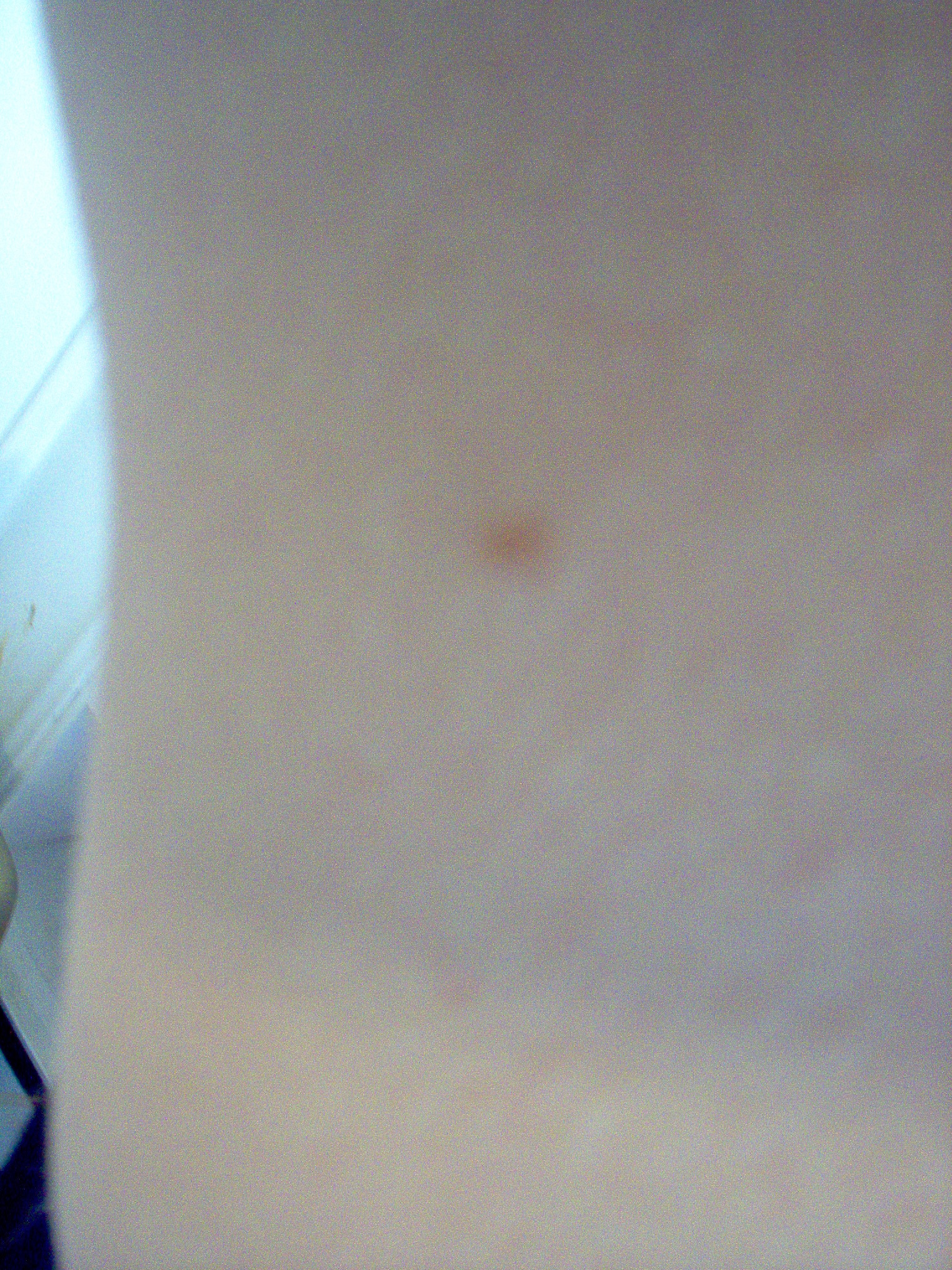 It's my back, near my tattoo. Left side, just about level with my armpit.