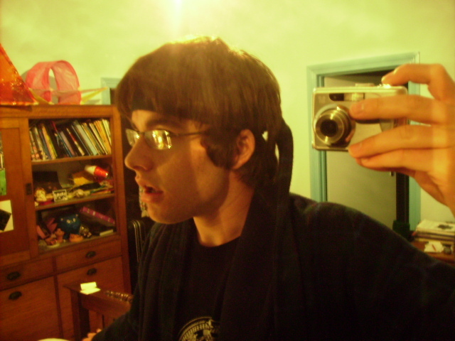 It's is very hard to take good photos of yourself. That is my dressing gown belt, tied around my head, ninja style. It stayed like that for the whole night.