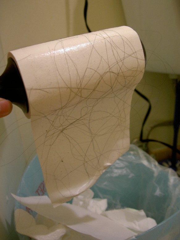 Rip off hairy sheet and discard. You are now left with a clean hairless floor.