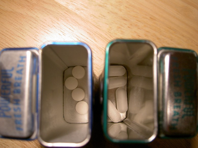 When I'm not home, these gum boxes are what I use to carry my meds around in case I need them.