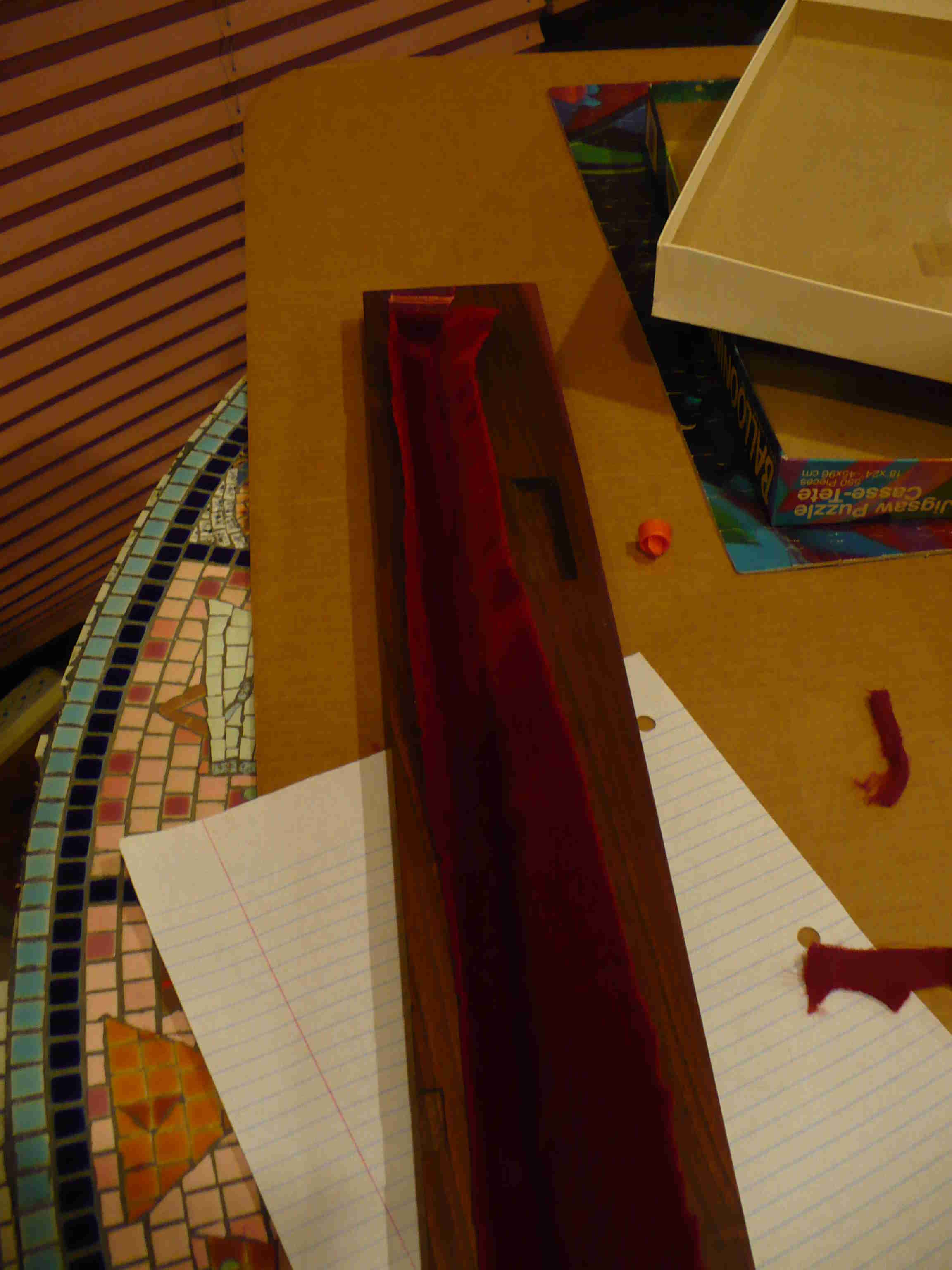 First half lined. I went back later with a matte knife and cut off the excess. That turned out to be remarkably hard; velvet is strong and stretchy.