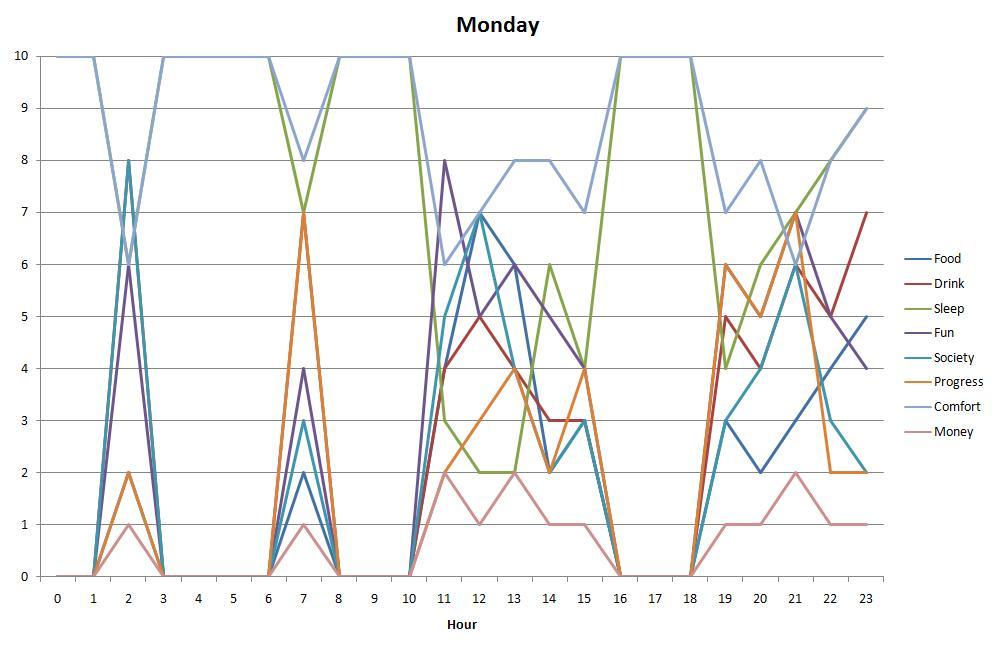 download file Not that much to see here - spent most of my day in bed with a migraine. Stupid health. Thus, a lot of it is on the basic sleep template, and sleep/comfort are quite high for most of the rest of the time as well. |
