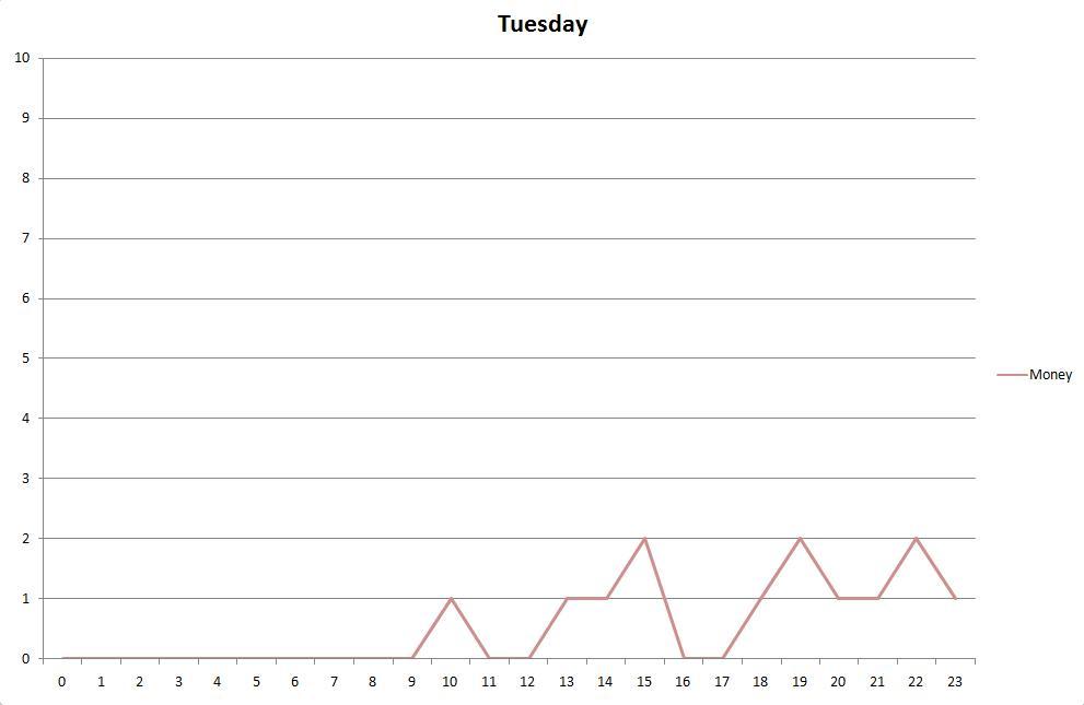 Desire for money across Tuesday - again, not a big thing when in bed all day.