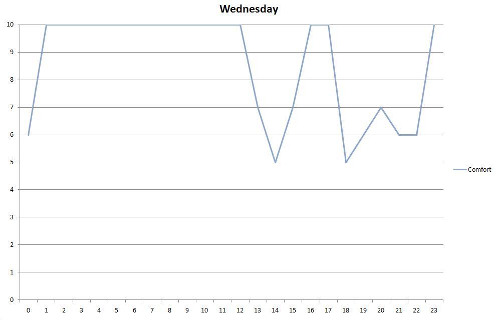 Desire for comfort across Wednesday - again, mostly maxed out due to illness and sleep.