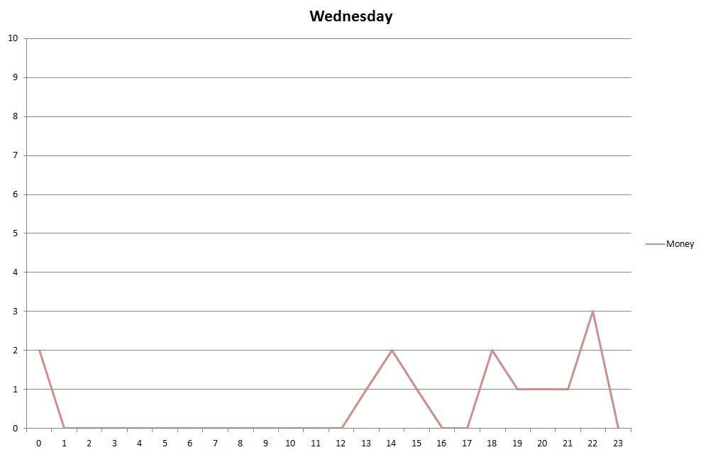 Desire for money across Wednesday - rising, and thus a sure sign that I was getting better.