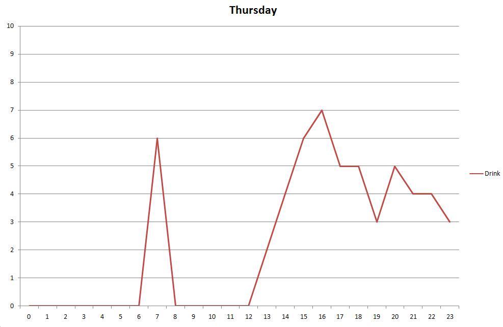 Desire for drink across Thursday - again, probably shouldn't rise that high and not actually prompt me to get a drink.