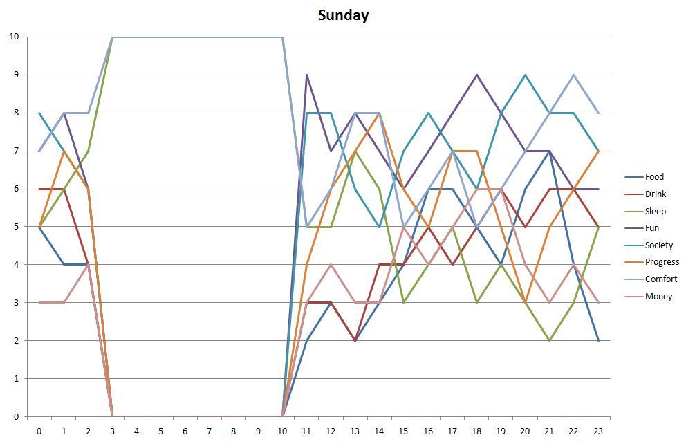 download file And this is, somewhat predictably, a graph of my desires across Sunday. I kept being a while late for these checks, which probably has something to do with playing Guitar Hero until half past two in the morning. And going to see films. Ah well. |