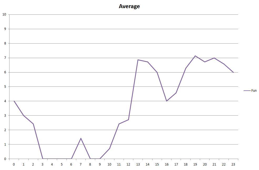 Desire for fun remains pretty much constant over my waking day, dropping only for the aforementioned siesta.