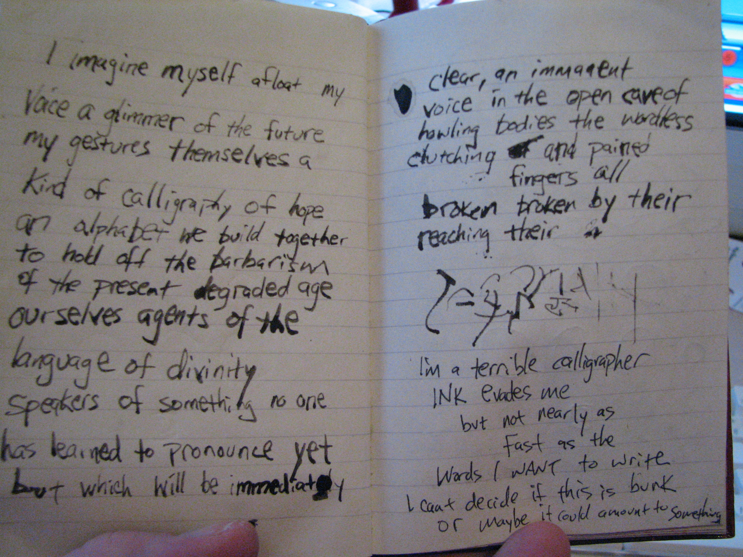 By playing with calligraphy, he's trying to make it visually interesting. Which is too bad, because the sentiments on the left are quite lovely.