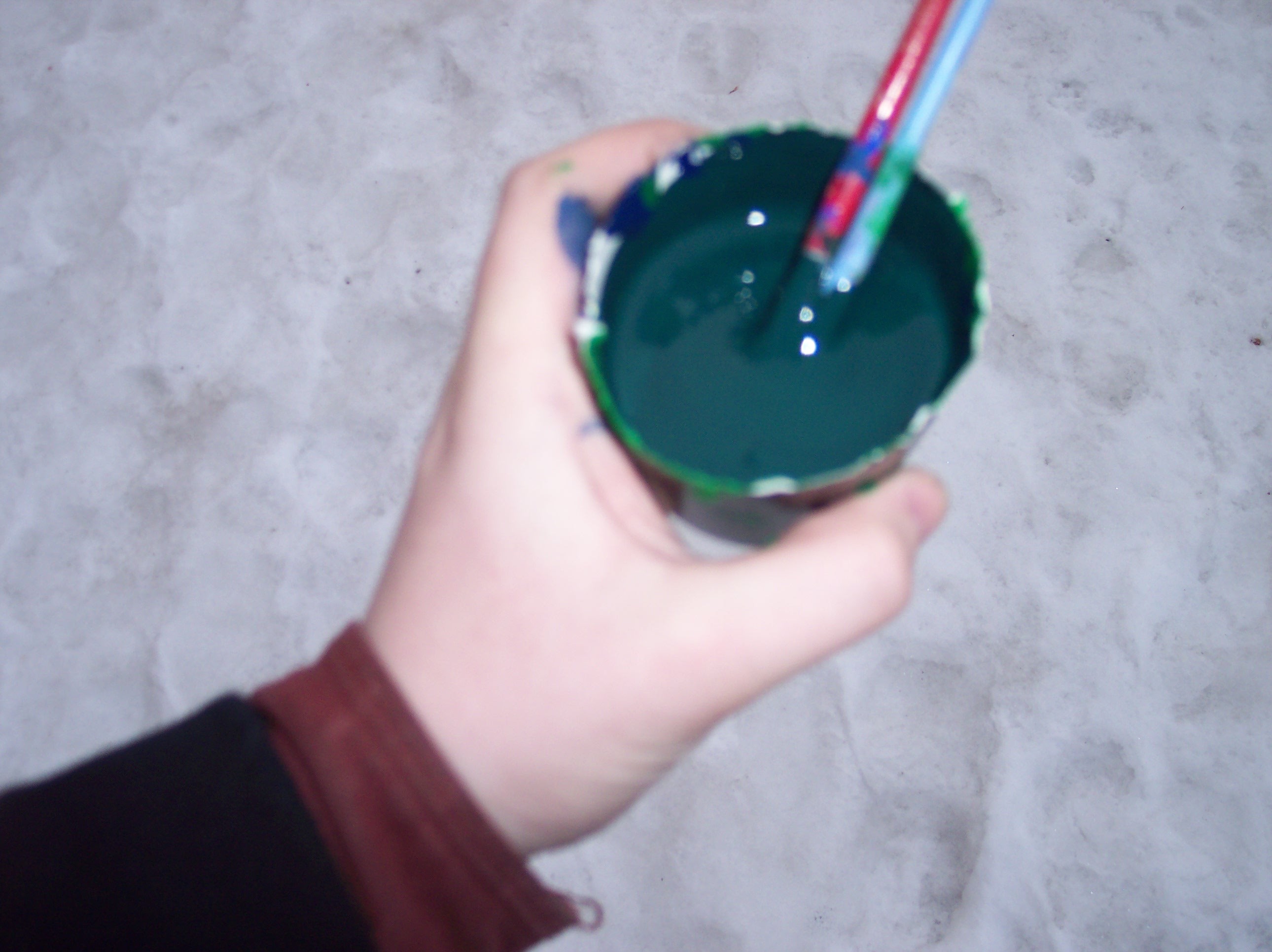 I mixed all the green and blue paint together and got, not surprisingly, a greenish blue color.