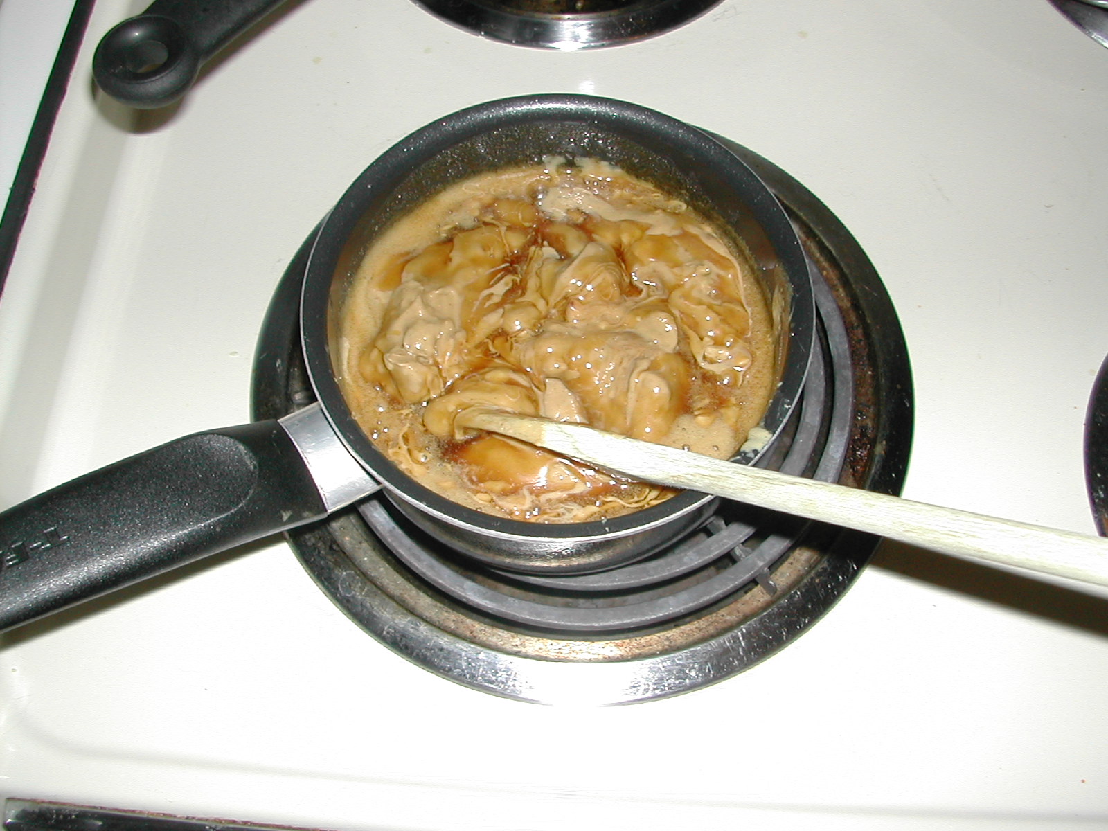 The honey and brown sugar mixture after I dumped in the peanut butter.