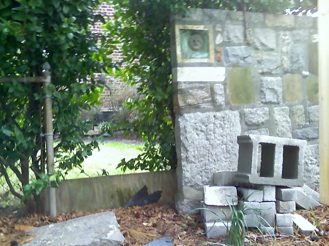 A gap between the wall and a fence on the Scary Weird Thing side.