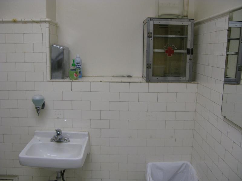 Here's a wide shot of a bathroom I wandered into on Melrose near La Brea. Notice anything goofy?