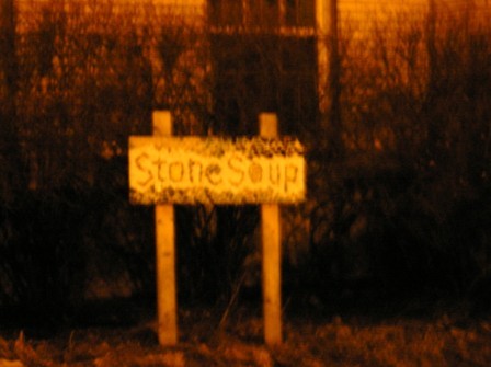 I passed Stone Soup, but used the no-flash night vision to photograph their sign, lest I make the activists more paranoid that they're being watched.