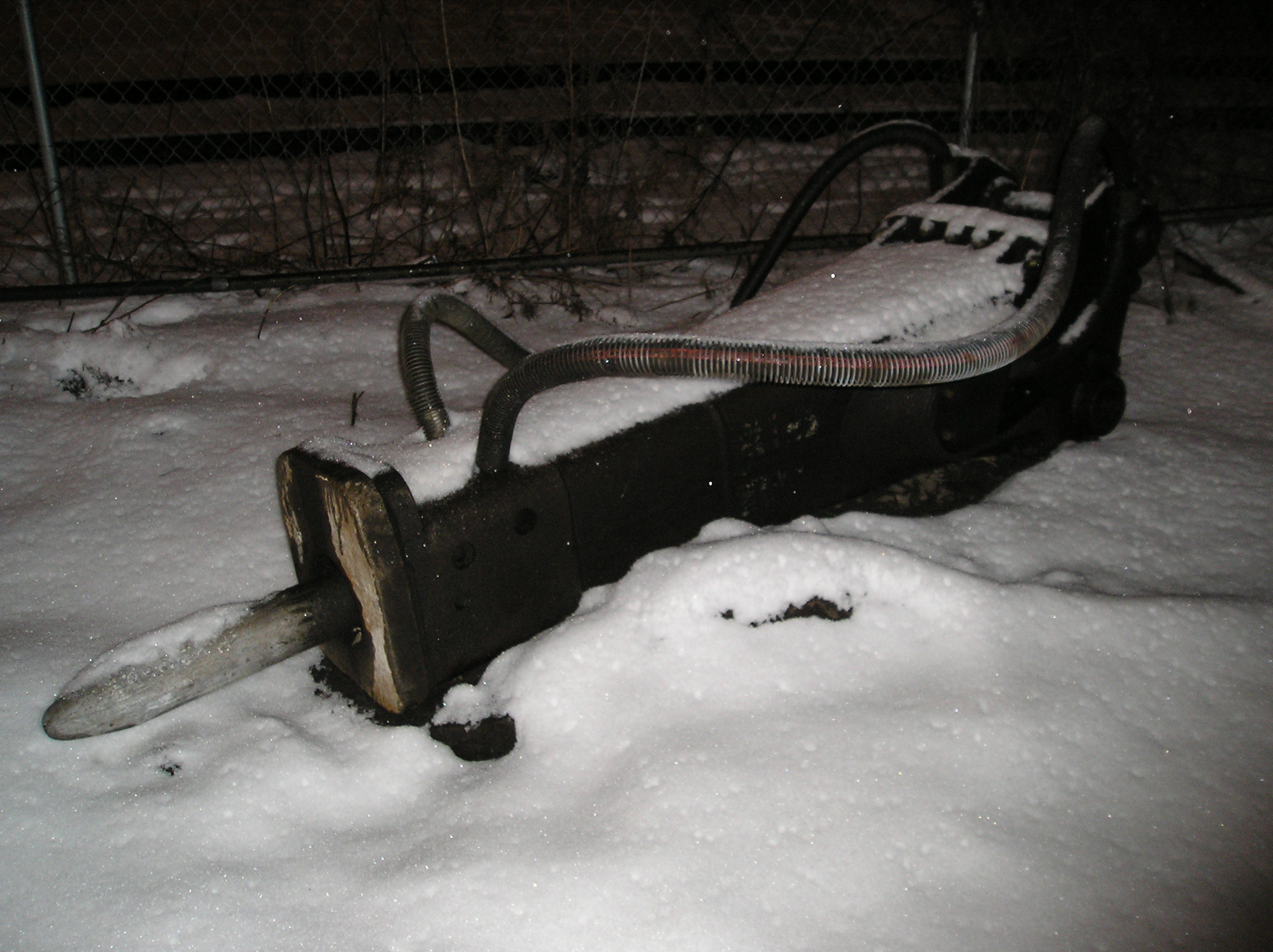 A giant's creepy sex toy. Or possibly an abandoned jackhammer.