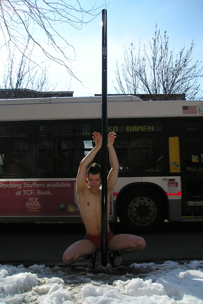 Another bus passes without stopping.