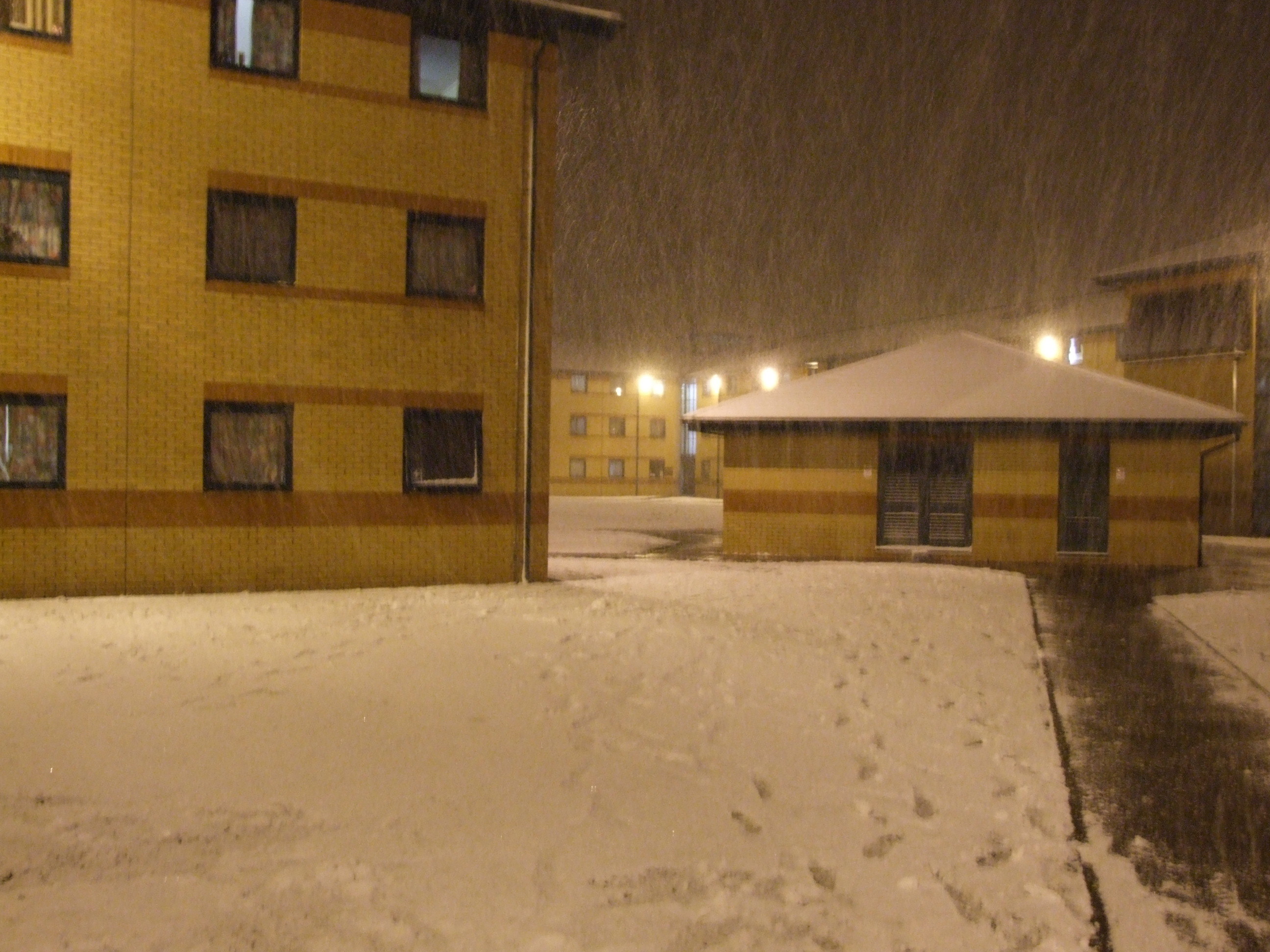 download file Ahhh, my old halls... still looks like a jail though. This was about three minutes before half-a-dozen hall doors opened and people started running out into a massive snowball fight - if I didn't have my camera and suit on me, I would've stayed to join in. As it was, I was also yearning for my bed... |