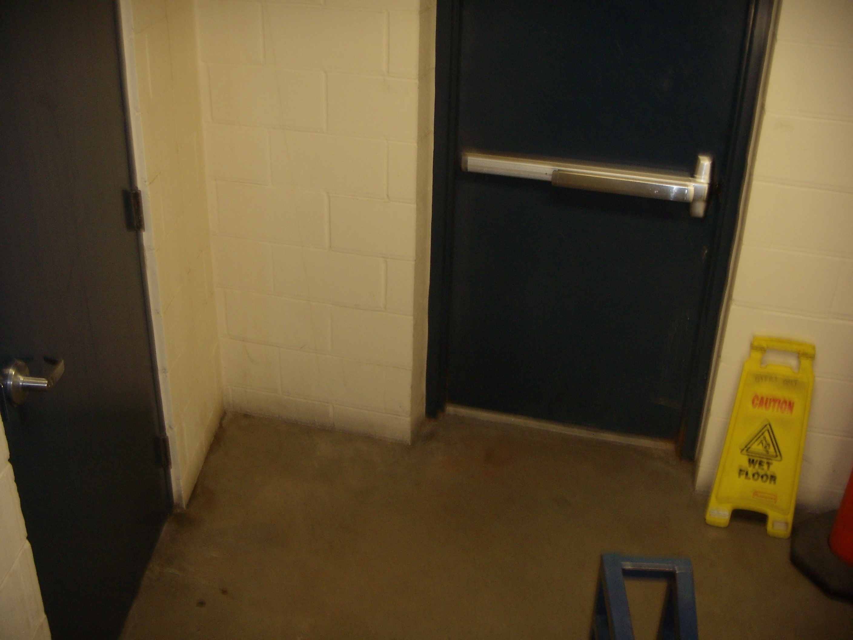 We were going down a flight of stairs in a building by St. Thomas and came to this point. There was an exit, a door going somewhere else, and more of the same. So we continued down the stairs.