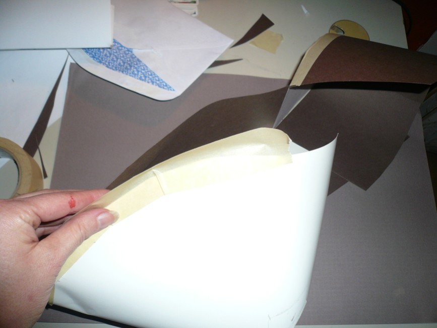 Also I used a lot of masking tape and cut and constructed and untaped and re-cut and re-taped for a couple hours until . . . .