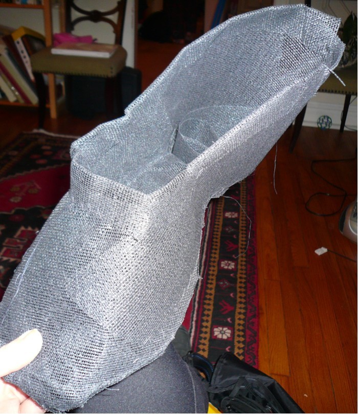 after machine sewing the wool, I hand sewed the buckrim adding lots of extra pieces for reinforcing and doing a lot of tucking and adjusting.