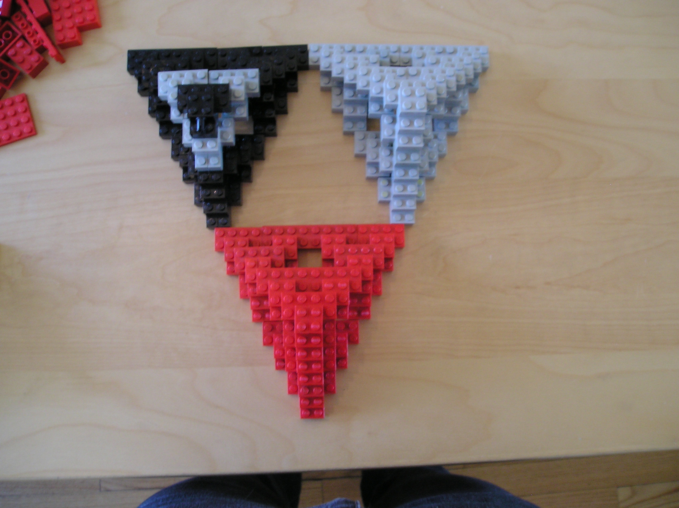 still looks cool from above, but i ran out or temporarily misplaced some black pieces. (they were later found by my bed. i do some of my best thinking just before or during sleep.)