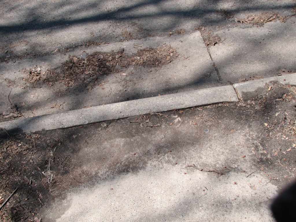 download file See that silt? That silt collects because of LOUSY DRAINAGE after winter, and a mud puddle sits there throughout winter and spring every year, often making our access to and from the car parked at the curb messy or perilous or both. |