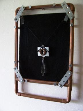 brushed steel machined plate, split ring washer, crystal chandelier drop, copper wire
