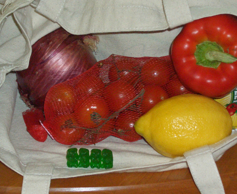 The gummies insisted on environmentally-friendly reusable canvas bags for their groceries. They want the world to stay clean so that it's a nice place to live when they take over.