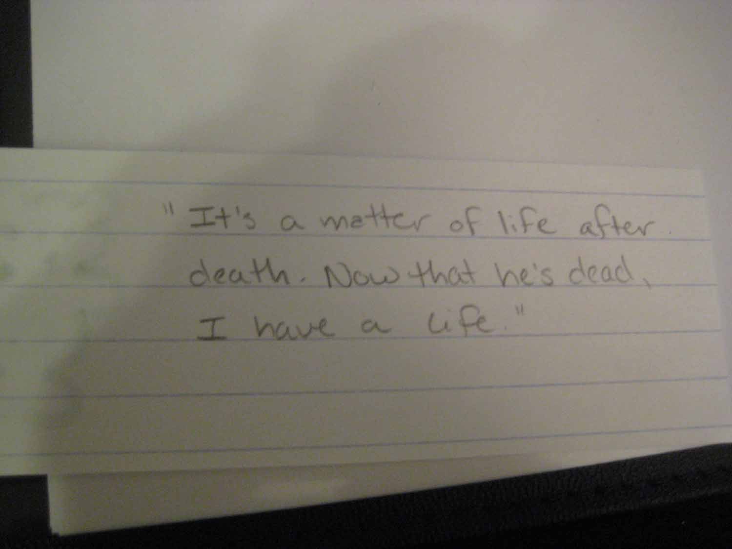 "It's a matter of life after death. Now that he's dead, I have a life."