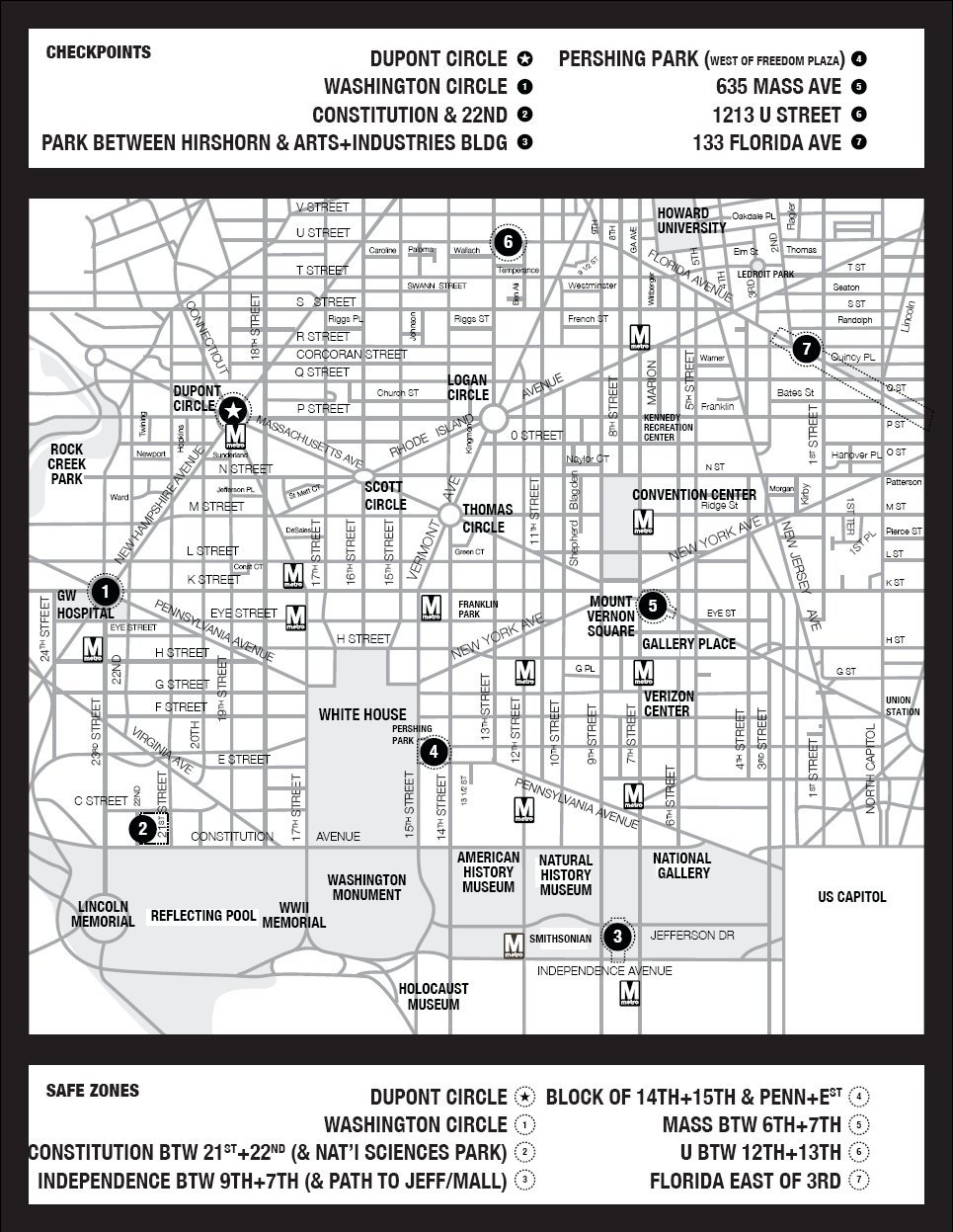 download file It's a good route, and a beautiful map. 0) Dupont Circle 1) Washington Circle 2) The Einstein Statue 3) The Smithsonian Gardens 4) Pershing Park (right across from city hall, and right next to a monumental DC map in the pavement) 5) The NPR building 6) Ben's Chili Bowl, a Washington fixture and probably its most famous eatery 7) Brandon's for the afterparty |