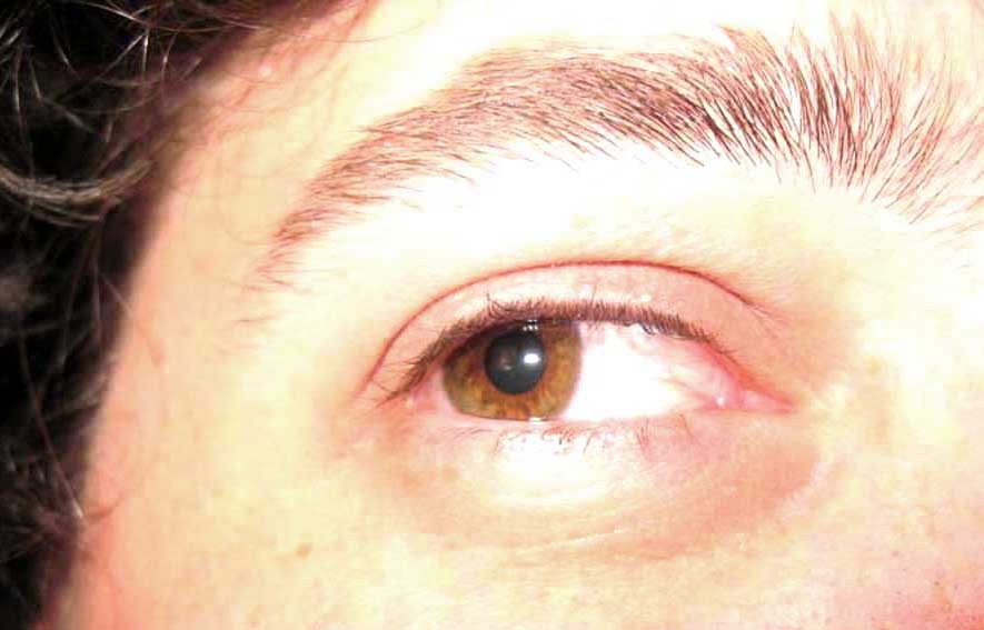 The right eye sees the world around him.