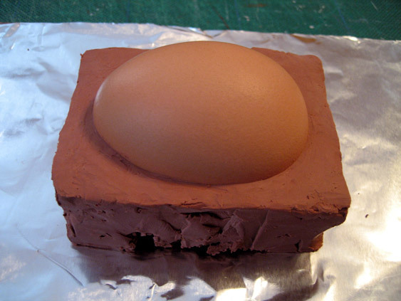 The first step is to divide the egg in two so I can cast a rubber mold.