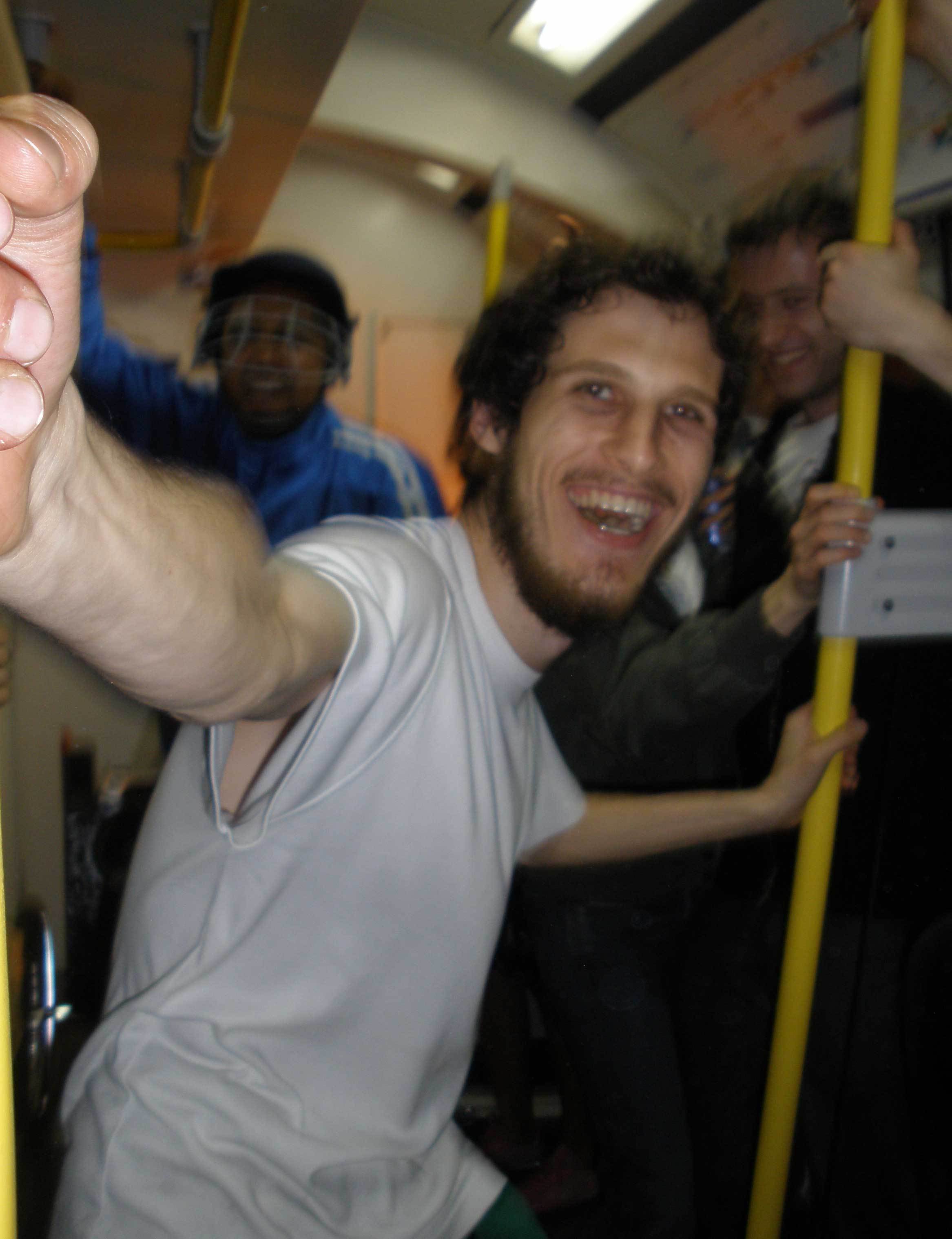 download file I met this fellow around 11pm on Millenium bridge. I was on my way from an event at the Hayward gallery to meet the cricketers on the edge of the City. In the middle of the bridge was a party, people testing their new sound system. I convinced them to bring it along. You can never have too many systems. Even when if the police politely ask you to turn it down, as they did to us around 2am, in our only and very brief encounter with the blue that night. |
