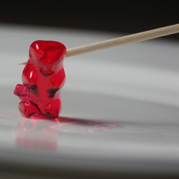 The toothpick was stuck. (It isn't clear from this shot, but there is nothing holding the toothpick up besides the gummy.)
