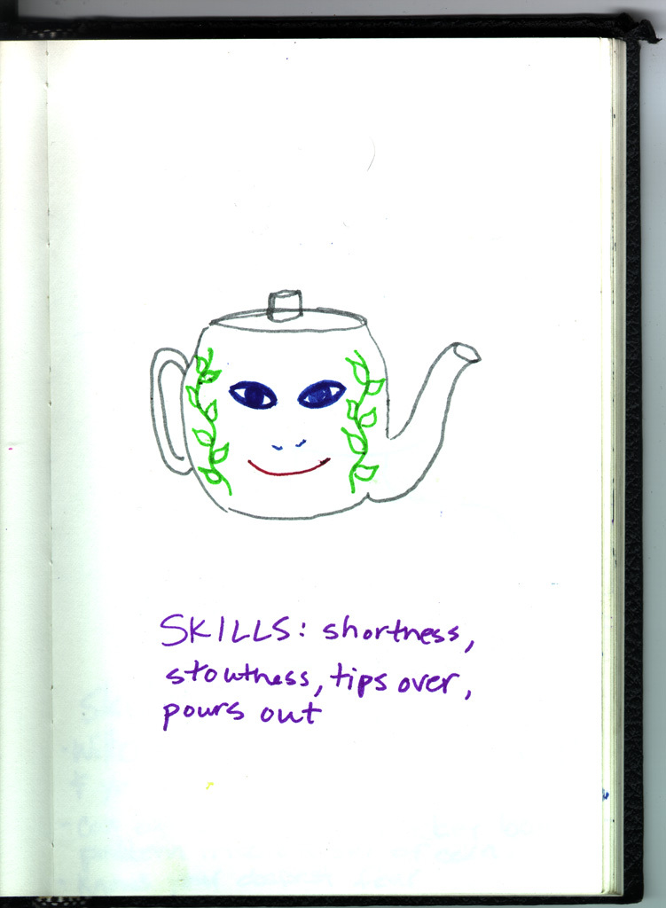Skills: shortness, stoutness, tips over, pours out